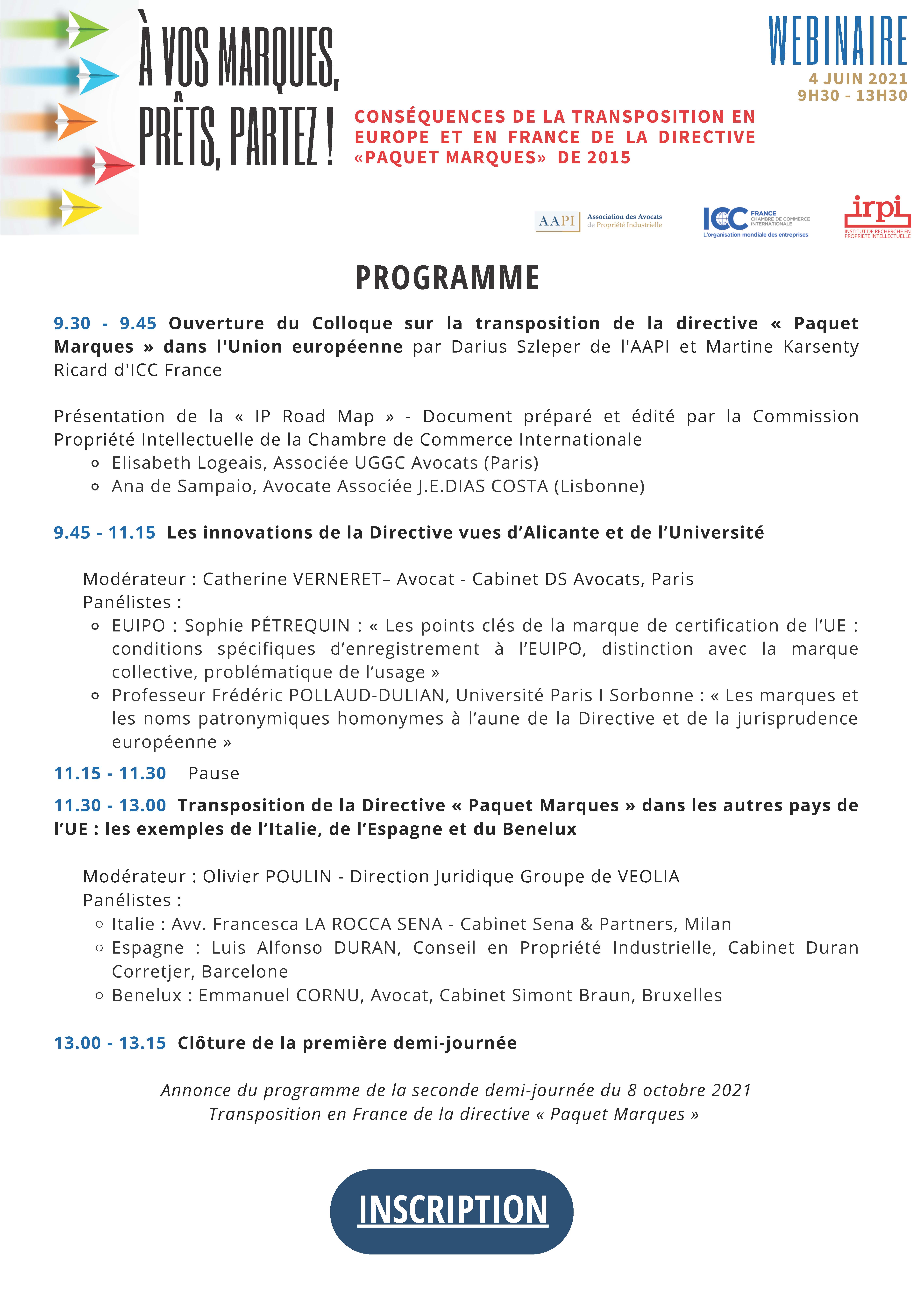 On 4 June, Francesca La Rocca of our Firm participated as a speaker in the interesting webinar “Consequences de la trasposition en europe et en France de la Directive ‘Paquet Marques’ de 2015” organised by AAPI, ICC France and IRPI, illustrating the transposition of the Directive in Italy.